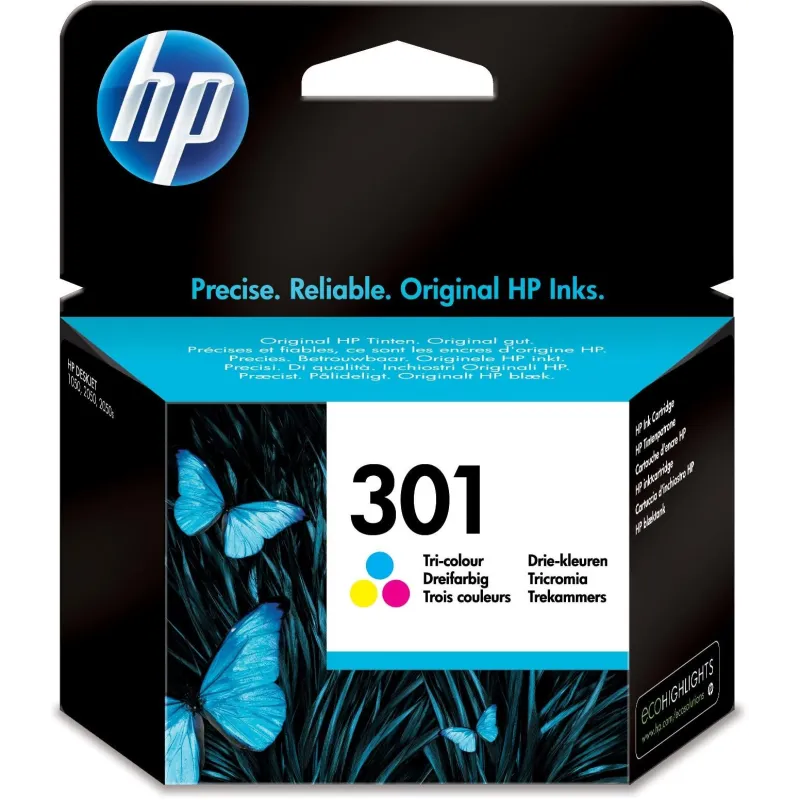 Cartucho de Tinta HP 301 Tricolor Cian/Magenta/Amarillo original, 150 páginas. Tinta colorante, inyección de tinta, tricolor C/M/A