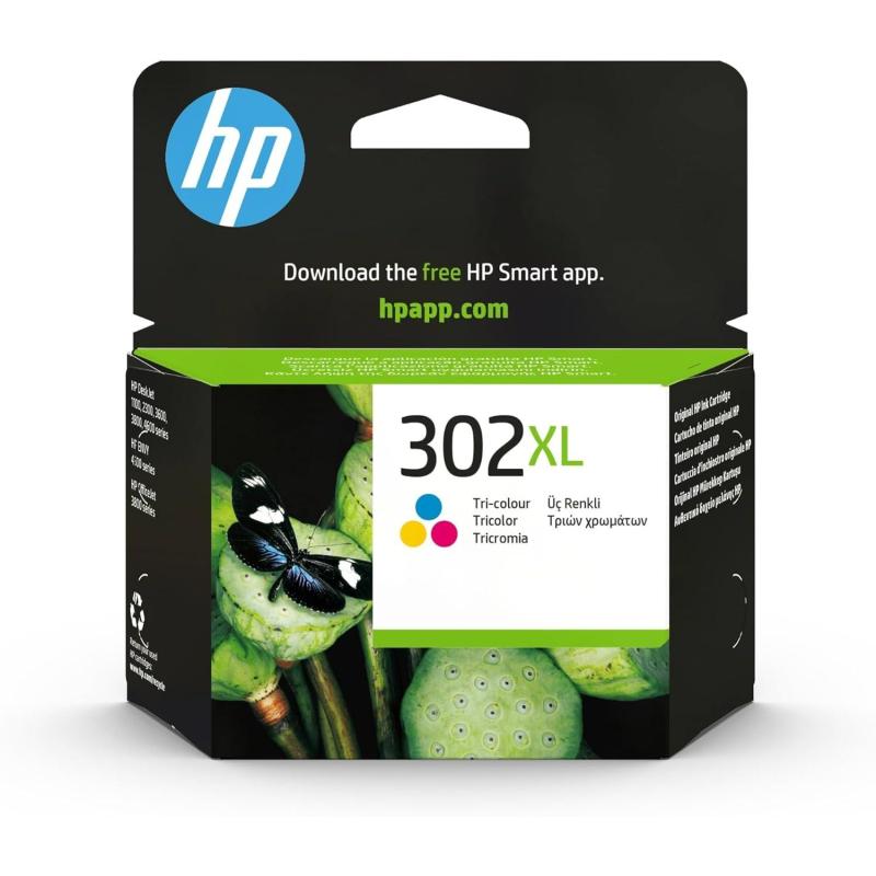 Cartucho de tinta HP 302XL F6U67AE Tinta Original Tricolor Rendimiento de impresión en tinta de color 300 Páginas Cian/Magenta/Amarillo