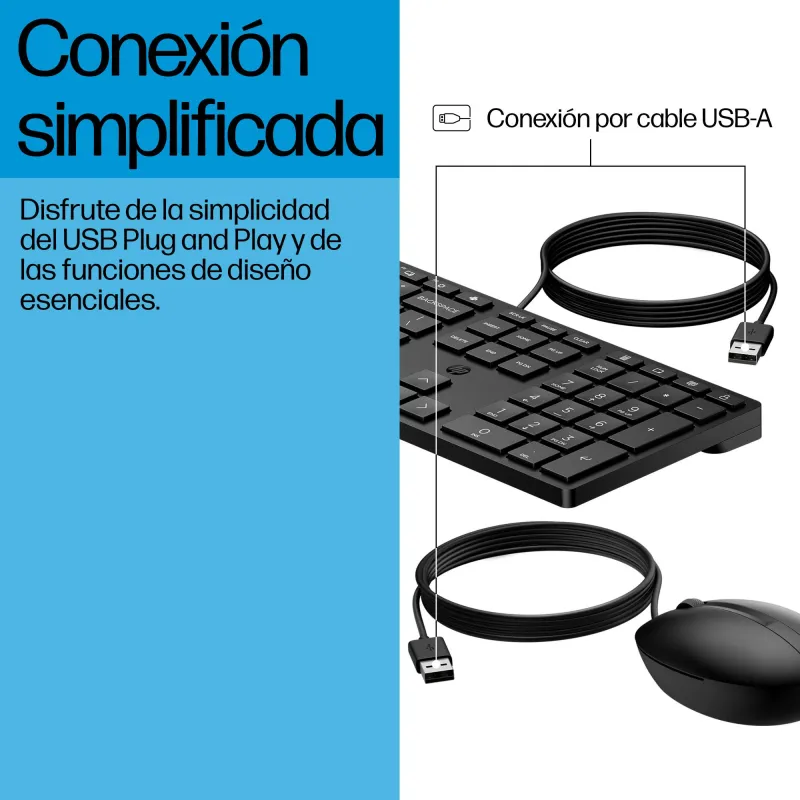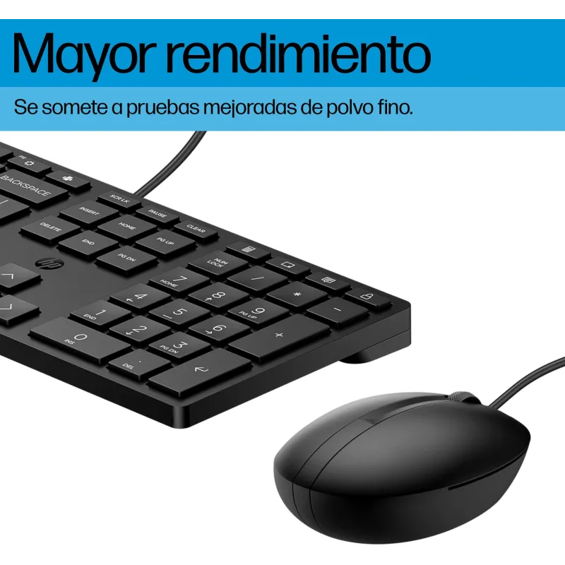 Combo de Teclado y Ratón HP 320MK con interruptor de membrana, resolución de movimiento 1000 DPI y conexión USB alámbrica