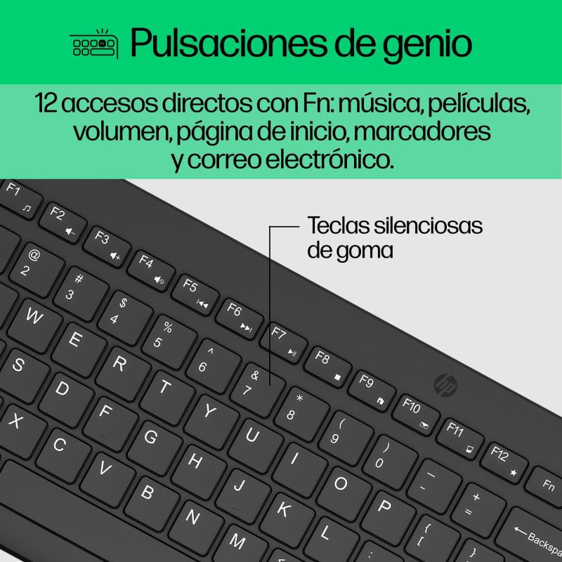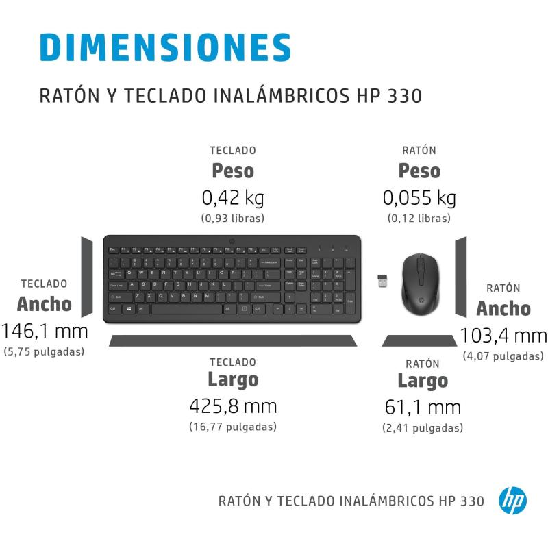 Teclado y Ratón HP 330 diseño ergonómico conectividad RF teclado numérico y ratón ambidiestro