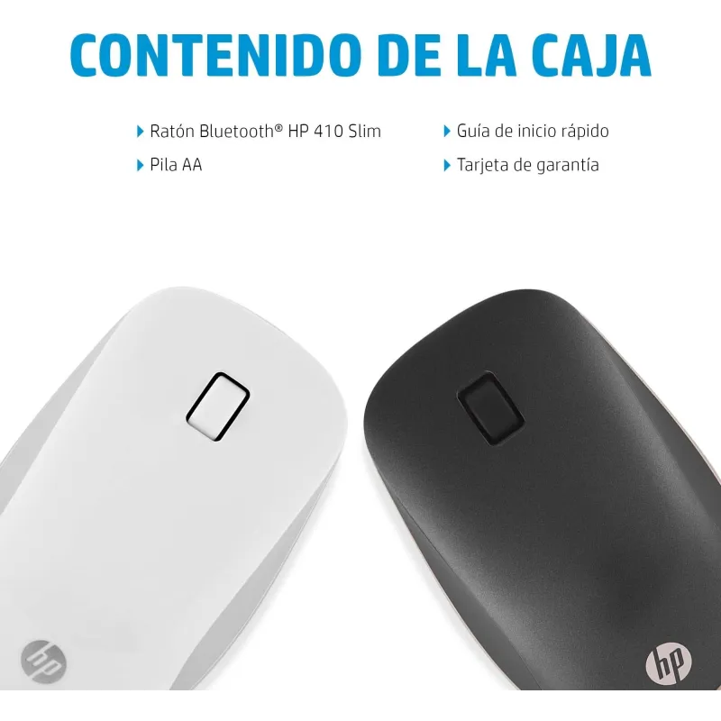 Ratón HP 410 Slim Bluetooth blanco con resolución 1200 DPI, versión de Bluetooth 5.0 y diseño ambidiestro, alcance inalámbrico de 10 m