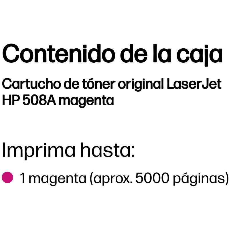 Tóner HP 508A CF363A con tecnología de impresión láser y rendimiento de impresión de 5000 páginas