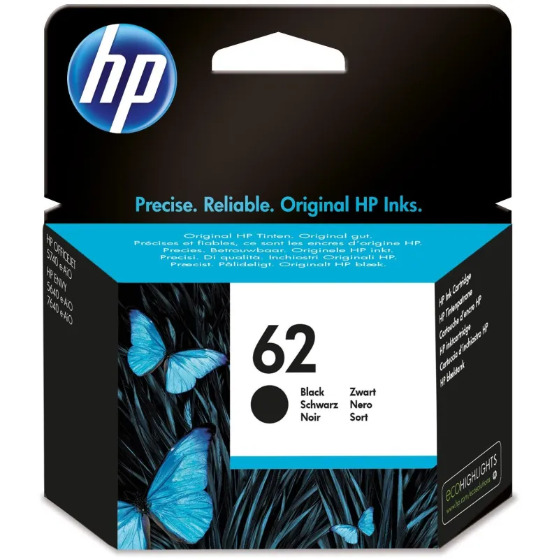 Cartucho de Tinta HP 62 Negro Crea de forma fiable documentos duraderos de gran calidad con gráficos y textos definidos para prácticamente cualquier cosa.