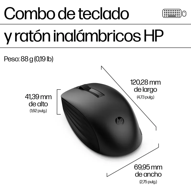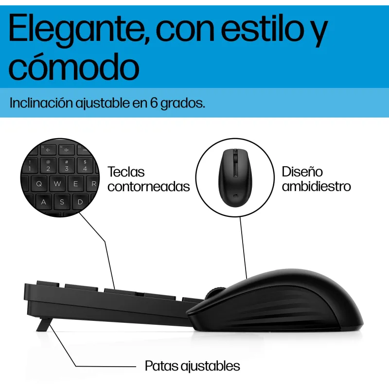 Teclado HP Conjunto de y ratón inalámbricos con resolución de movimiento 4000 DPI, alcance inalámbrico 10 m y diseño resistente a derrames