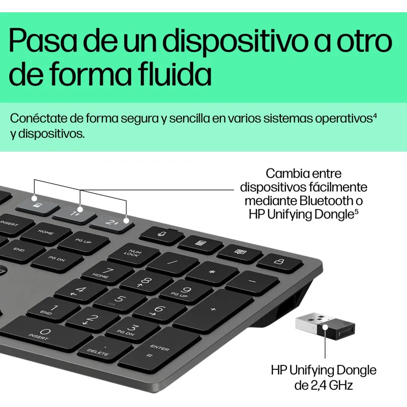 El Teclado inalámbrico HP 720 ofrece una conectividad avanzada gracias a su interfaz USB y Bluetooth, lo que permite emparejarlo fácilmente con varios dispositivos sin necesidad de cables. Esta funcionalidad lo convierte en una opción ideal para quienes necesitan cambiar entre ordenadores, tablets o incluso sistemas operativos como Windows, macOS o ChromeOS sin complicaciones. La tecnología inalámbrica de largo alcance de hasta 10 metros garantiza una experiencia de uso fluida y sin interrupciones. Además, su diseño completo con teclado numérico completo permite aumentar la productividad en tareas que requieren precisión y velocidad. Este teclado representa una solución moderna y eficiente para entornos profesionales y domésticos.