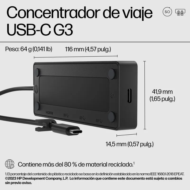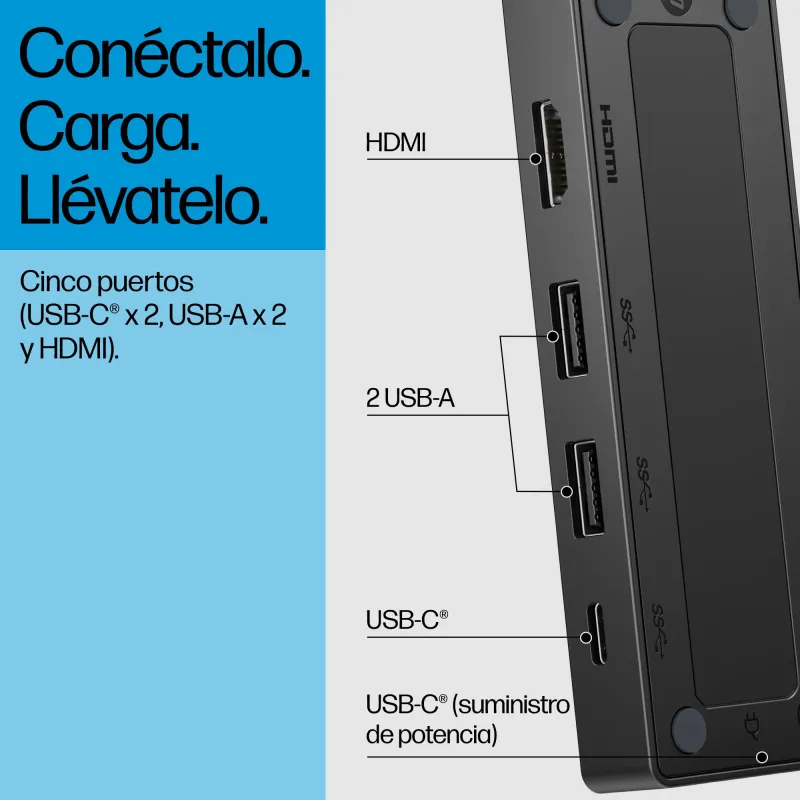 Docking Station HP 86S97UT con USB 3.2 Gen 2 Type-C, HDMI 2.0 y soporte para Windows, macOS, Android y ChromeOS, ligera y compacta