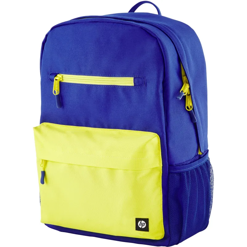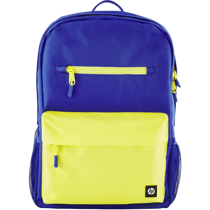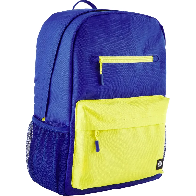La Mochila HP Campus Azul destaca también por su compromiso con el medio ambiente. Está fabricado con un 50% de   material poliéster reciclado postconsumo y su embalaje es completamente reciclable, lo que lo convierte en una opción ecológica sin comprometer la calidad. Su diseño en colores azul y amarillo aporta un toque de frescura y personalidad. Con unas dimensiones de 295 mm de ancho, 185 mm de profundidad y 435 mm de altura, ofrece el espacio perfecto para transportar tu portátil y accesorios con seguridad. Su peso ligero, de solo 490 g, lo hace ideal para llevarlo contigo a cualquier parte sin esfuerzo. Este modelo pertenece al segmento HP Hogar, lo que lo convierte en una opción fiable para estudiantes, profesionales y usuarios domésticos que buscan una mochila funcional y con estilo.