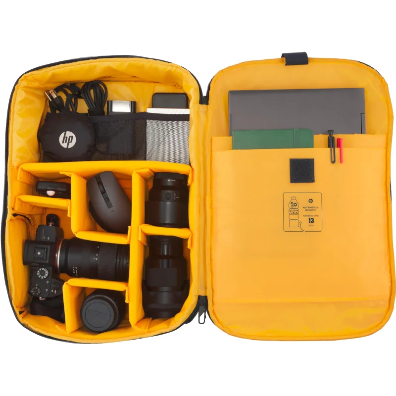 Fabricado con poliéster de alta resistencia,  La Mochila HP 6M5S3AA ofrece una protección eficaz contra el desgaste diario. Su construcción como mochila resistente al agua lo convierte en un accesorio indispensable para quienes se desplazan bajo cualquier condición climática. El material no solo garantiza durabilidad, sino también un acabado estético moderno y profesional. El interior acolchado protege el portátil de 16,1 pulgadas de impactos, mientras que el diseño ergonómico proporciona comodidad durante trayectos largos. Esta combinación de materiales y diseño asegura una experiencia de uso cómoda y segura, ideal para usuarios exigentes que valoran tanto la funcionalidad como el estilo.