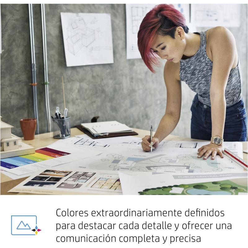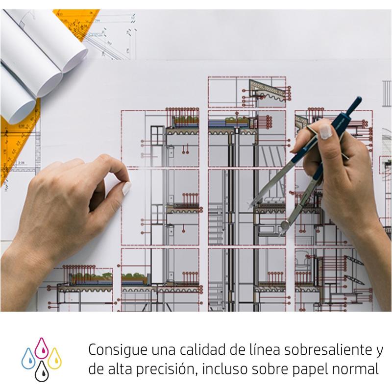 OBTENGA COLORES BRILLANTES Y UNA DESTACADA CALIDAD DE IMAGEN EN PAPEL NORMAL: Obtenga colores brillantes y una destacada calidad de imagen en papel normal: la combinación perfecta para la impresión de documentos técnicos. Trabaje sin interrupciones con impresiones de secado rápido y un rendimiento sin problemas. Las tintas Originales HP maximizan la vida del cabezal de impresión y reducen el coste de propiedad.