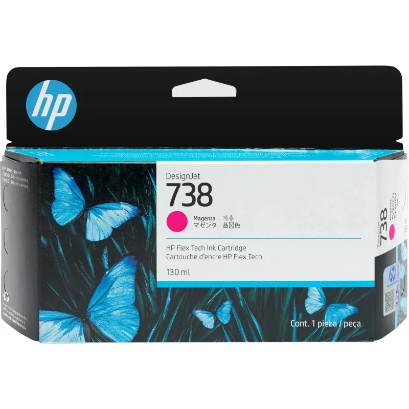 Cartucho de tinta HP DesignJet 738 498N6A con volumen de tinta 130 ml, colores de impresión magenta, compatible con HP DesignJet T850 y T950