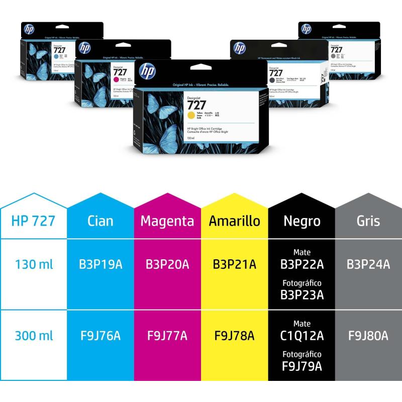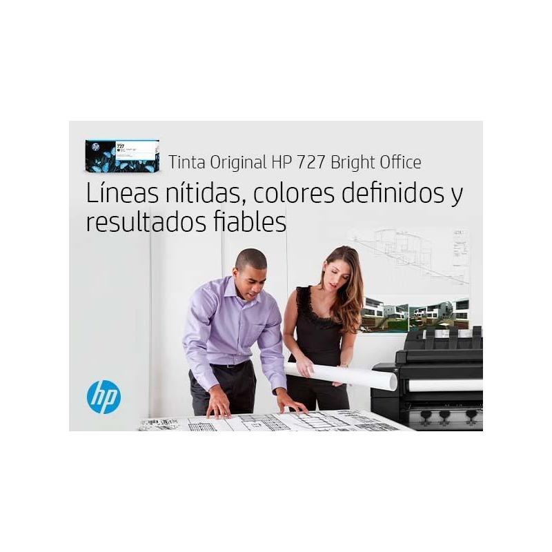 Los cartuchos de tinta HP 727 Designjet están diseñados junto con la impresora HP Designjet como un sistema de impresión optimizada. Las tintas originales HP pueden ayudarle a reducir el tiempo de inactividad y a mejorar la productividad. Impresiones nítidas, de secado rápido y resistentes a las manchas que le ayudan a mantener el ritmo.