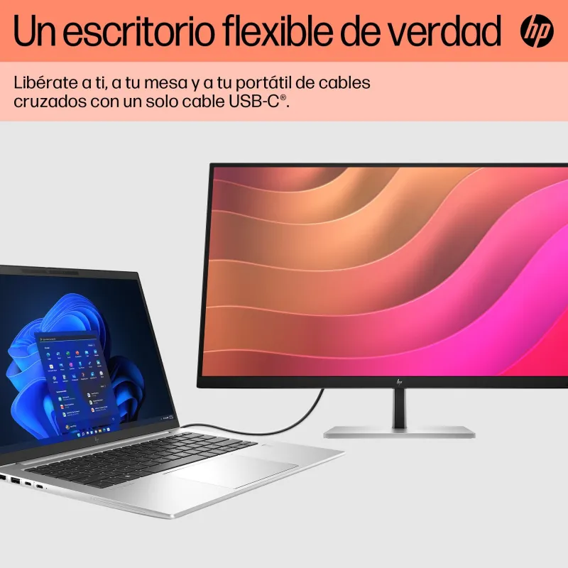 Para un escritorio más limpio, integra USB-C con DisplayPort USB-C y carga rápida USB Power Delivery de 65 W, además de conexiones HDMI, DisplayPort y RJ-45, con altavoces incorporados (2 unidades, 6 W RMS).