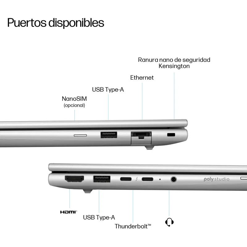 CONECTIVIDAD DE ÚLTIMA GENERACIÓN PARA UN ENTORNO DIGITAL MODERNO: El Ordenador Portátil HP Elitebook 6 G1i AD3A0ET está preparado para el entorno digital actual gracias a su conectividad avanzada. Incorpora Wi-Fi 7 y Bluetooth 5.4 para asegurar velocidades de transferencia rápidas y estables. También incluye dos puertos Thunderbolt 4, HDMI 2.1 y USB 3.2, lo que permite conectar múltiples dispositivos y monitores sin limitaciones. Esta versatilidad lo convierte en una herramienta ideal para profesionales que trabajan con estaciones de trabajo móviles o en entornos colaborativos. La compatibilidad con NFC y el puerto Ethernet completan un conjunto de opciones que facilitan la integración en cualquier red o sistema empresarial.