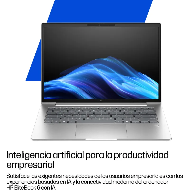 INTELIGENCIA ARTIFICIAL PARA LA PRODUCTIVIDAD EMPRESARIAL: Las experiencias basadas en IA y la conectividad moderna mejoran la productividad del usuario. El ordenador con IA HP EliteBook 6 G1i de 14 pulgadas ofrece una NPU de 11 TOPS[3], una gran seguridad y una capacidad de gestión empresarial en un ordenador sumamente configurable que satisface las exigentes necesidades de los usuarios empresariales.
