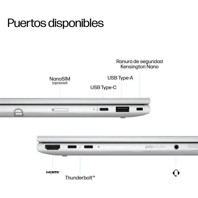 El Ordenador Portátil HP EliteBook 8 Flip G1i AD2Z6ET destaca también por su conectividad avanzada. Incorpora Wi-Fi 7 con antena 2x2 y controlador Intel BE201, que proporciona velocidades de conexión ultrarrápidas y mayor estabilidad en redes congestionadas. También incluye Bluetooth 5.4 y NFC para facilitar el emparejamiento con otros dispositivos. En cuanto a puertos, dispone de dos Thunderbolt 4, un HDMI 2.1 y USB tipo C con modo DisplayPort, lo que permite conectar pantallas externas, estaciones de acoplamiento y otros periféricos con facilidad. Esta gama de opciones garantiza una conectividad fluida y versátil para todo tipo de entornos profesionales.