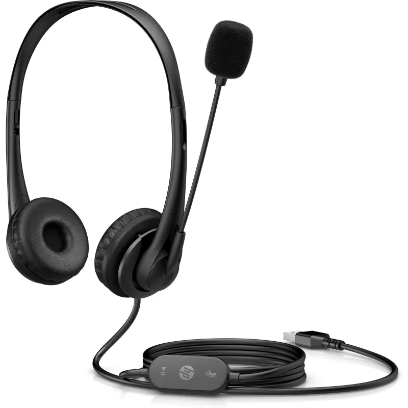 Auriculares HP estéreo USB G2 con micrófono tipo boom, diseño binaural, tecnología de conectividad alámbrica y compatibilidad multiplataforma