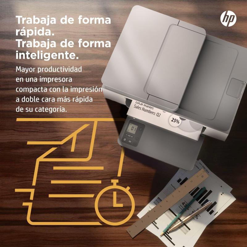 SUPERPRODUCTIVA. SUPERCOMPACTA: Una impresora multifunción de gran productividad con la impresión a doble cara más rápida de su categoría, un alimentador automático y la aplicación HP Smart que permite ahorrar tiempo. Disfruta de una experiencia sin preocupaciones gracias a una configuración simplificada.