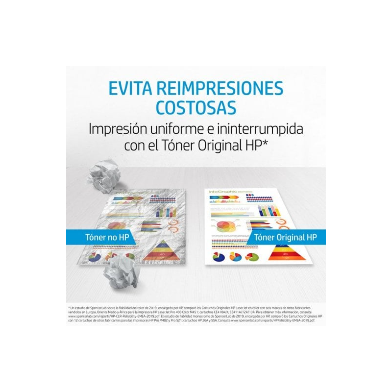 Imprima todos sus documentos empresariales de forma rápida y eficiente, e iguale el rendimiento de su impresora HP LaserJet Pro a color con los cartuchos de tóner Original HP con JetIntelligence. Confíe en la calidad y fiabilidad de HP para obtener unos resultados de impresión espectaculares.