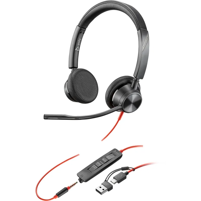 Auriculares y Cascos: HP Poly Blackwire 3325 Auriculares Estéreo USB-C Conector de 3,5 mm + Adaptador USB-C/A