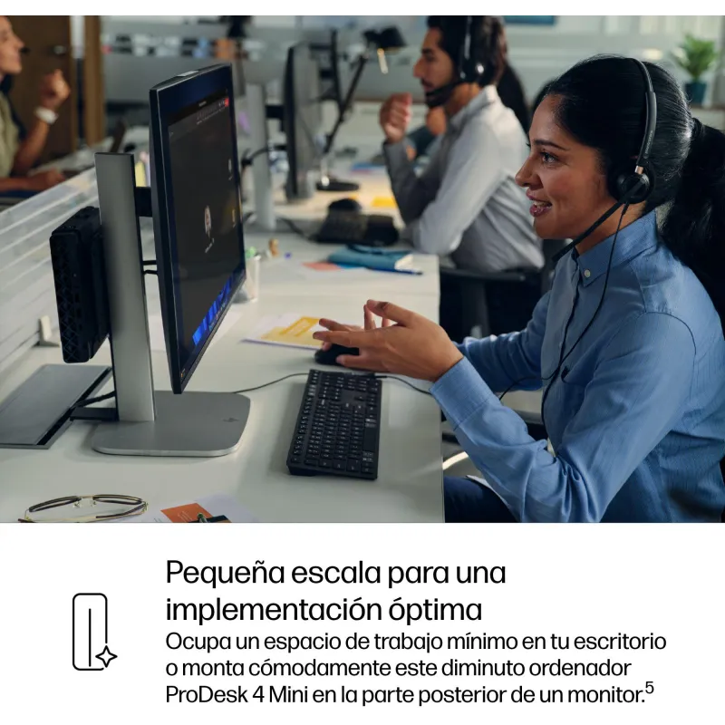 El HP ProDesk 4 Mini G1i Desktop AI PC (BY7E2ET) es un PC mini orientado a entornos profesionales donde prima ahorrar espacio sin renunciar a un Windows completo. Este equipo combina un Intel Core Ultra 5 235T, 16 GB de memoria DDR5 y un SSD NVMe de 512 GB, una configuración pensada para ofimática, navegación intensiva, videollamadas y aplicaciones de gestión en empresa.
