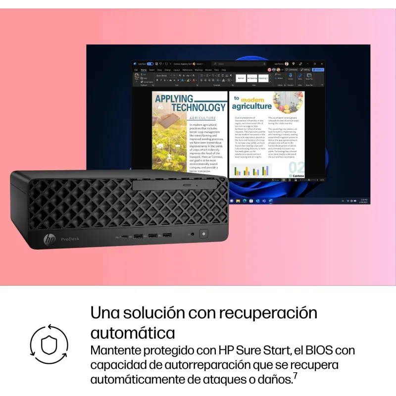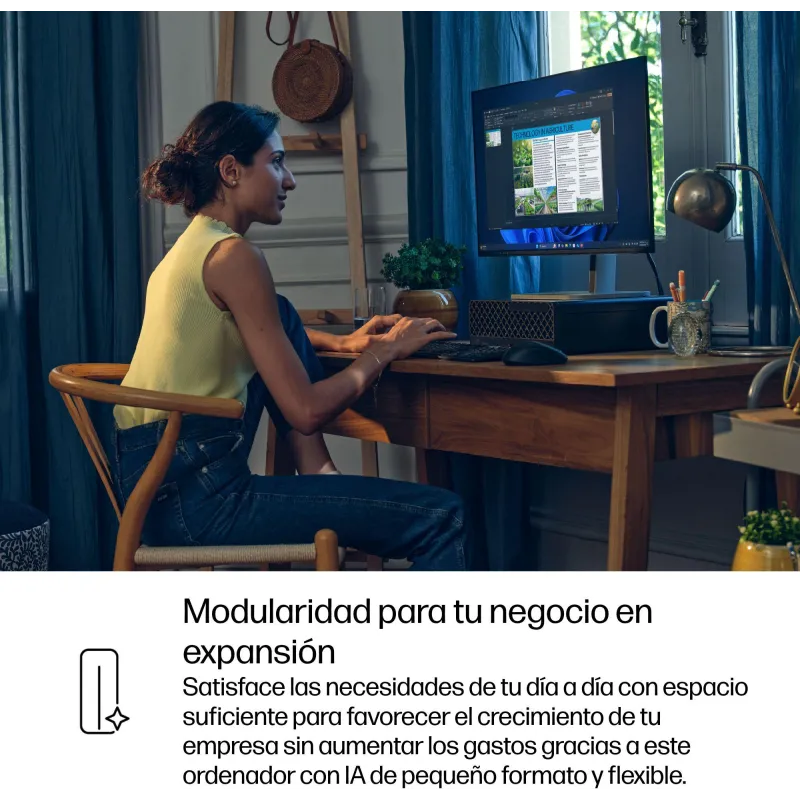 El diseño SFF del Ordenador de sobremesa HP Prodesk 4 SFF G1i 9H7U9ET permite ahorrar espacio sin renunciar a la potencia. Su chasis elegante y funcional en color negro Jack se adapta a cualquier entorno de trabajo. Ofrece una conectividad completa con puertos USB 3.2 Gen 1 y Gen 2, HDMI 2.1, DisplayPort 2.1 y Ethernet LAN. Esta variedad de conexiones facilita la integración con monitores, periféricos y redes empresariales. La inclusión de Windows 11 Pro garantiza compatibilidad con las últimas aplicaciones de productividad. La combinación de memoria DDR5 5600 MHz y procesador Intel Core Ultra 5 lo convierte en una solución profesional compacta y eficiente.