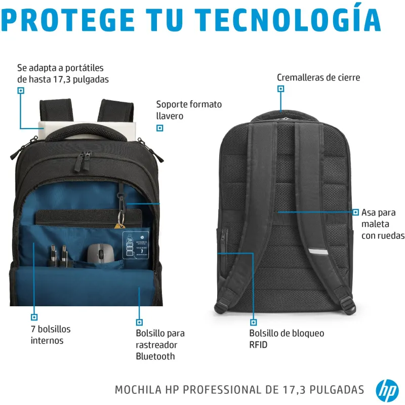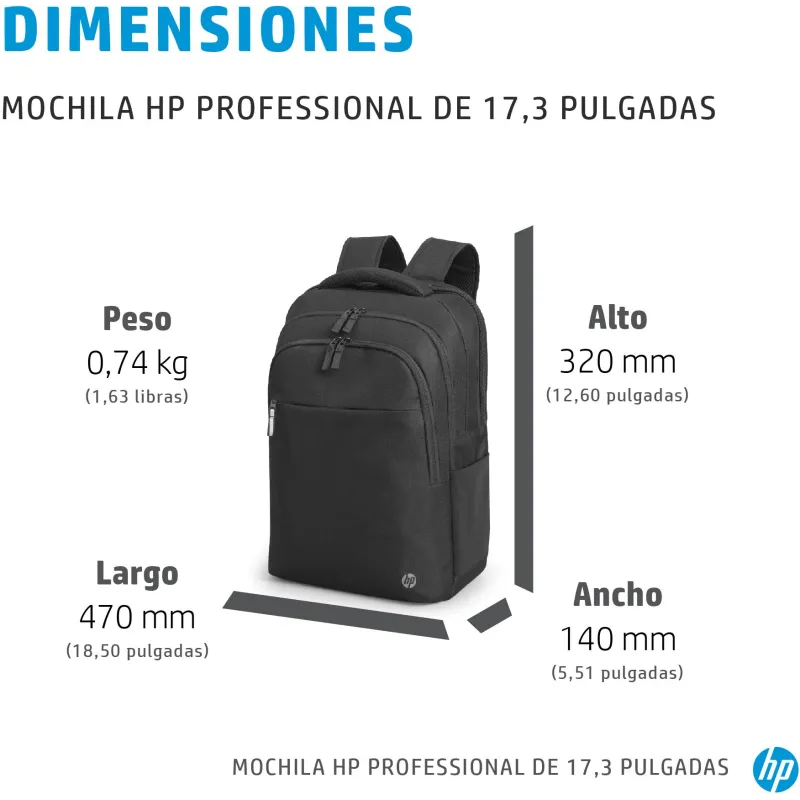 Detalles técnicos - Contenidos de caja: HP Professional 17.3-inch Backpack; Documentation