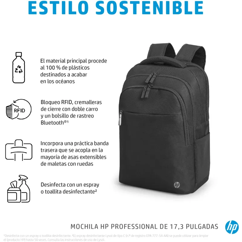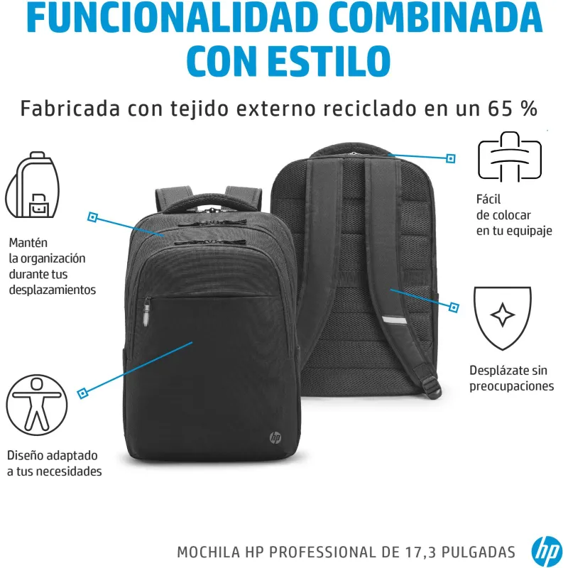 Maletin HP Professional 500S6AA , mochila resistente al agua en color negro, compatible con pantalla de 17.3 pulgadas, fabricada en plástico duradero