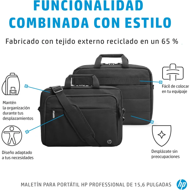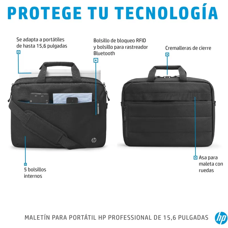 Maletin HP Professional 500S7AA resistente al agua, fabricado en plástico negro, compatible con portátiles de pantalla 15.6 pulgadas, ligero y duradero