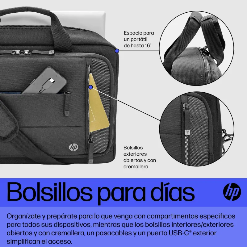 Maletín HP Renew Executive 6B8Y2AA con diseño monocromo, material poliéster y compatible con pantalla 16.1 pulgadas, perfecto para uso profesional