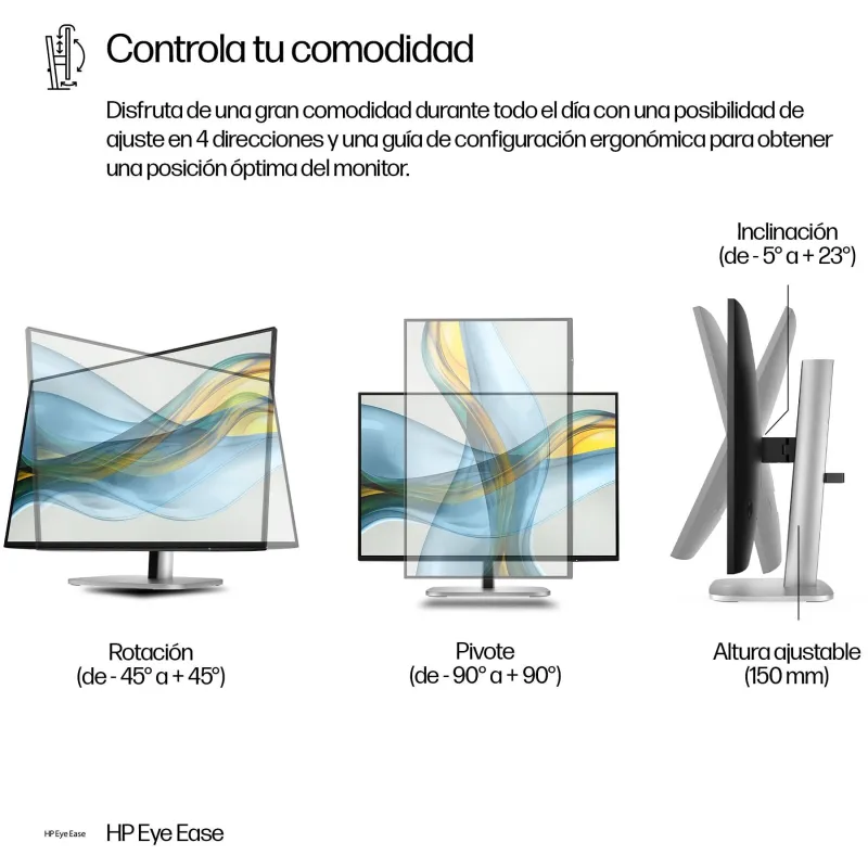 • Necesitas ajustar el puesto a tu postura, con altura, inclinación, giro y pivote en un monitor de 24".