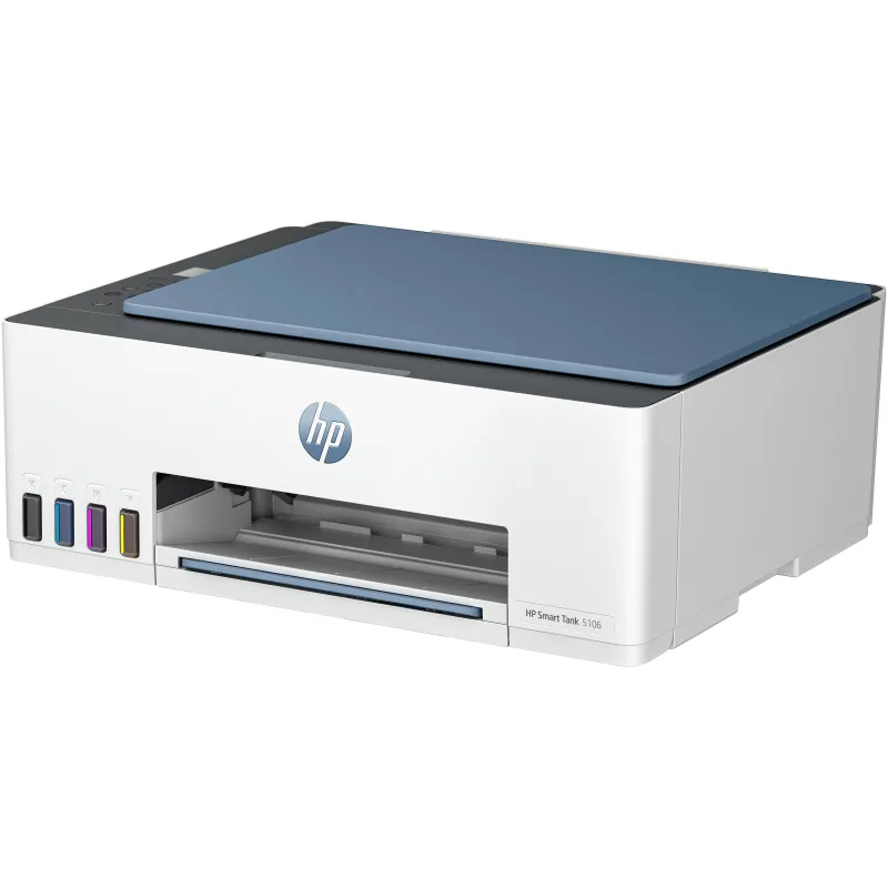 La HP Smart Tank 5106 es una impresora multifunción de depósito de tinta muy orientada a casa y teletrabajo: buena para imprimir en color, con Wi-Fi Direct y soporte de impresión móvil para que cualquiera en casa pueda usarla.