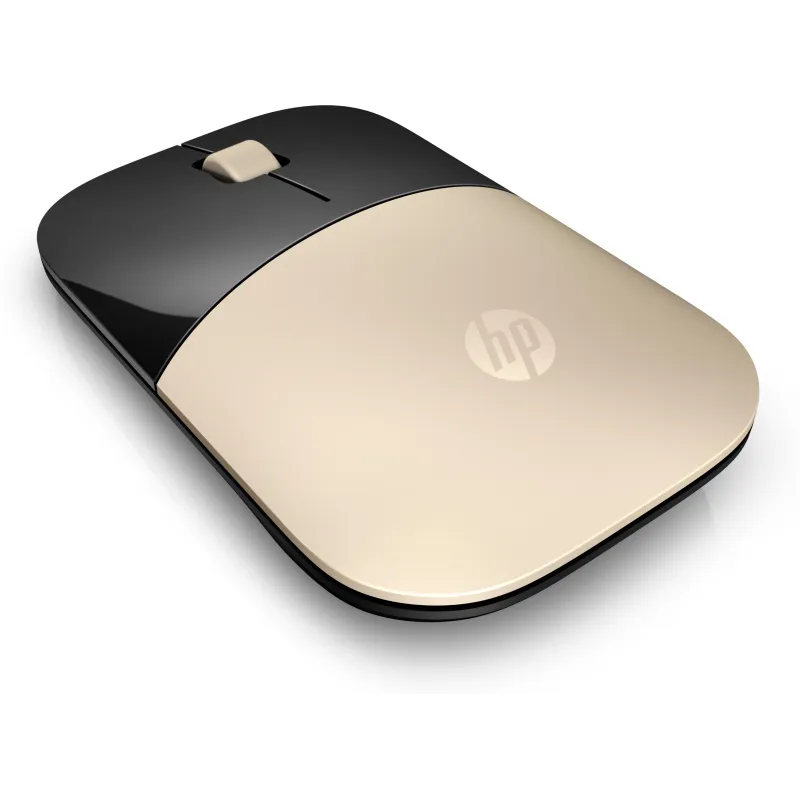 Ratón HP inalámbrico Z3700 dorado con resolución de 1200 DPI, tecnología de sensor óptico y diseño ambidextro para uso en oficina o portátil