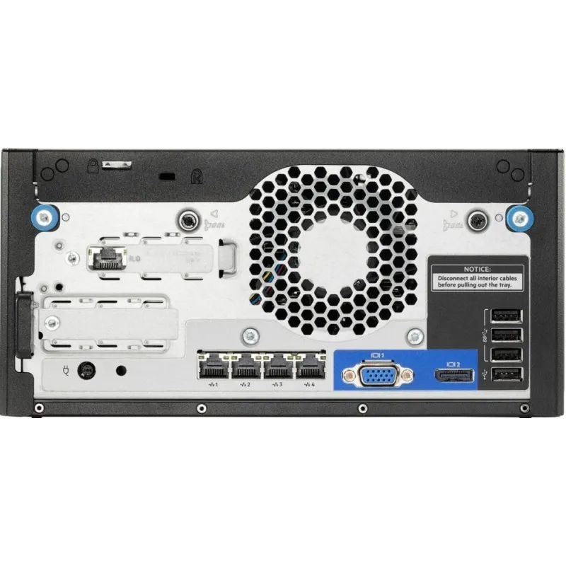 Cuatro puntos de red integrados responden a las necesidades de conectividad de red de los clientes de pequeñas empresas. Compatible con tarjetas verticales de 1 GbE, 10 GbE BASE-T y SFP+ opcionales para aquellos que necesitan aún más.