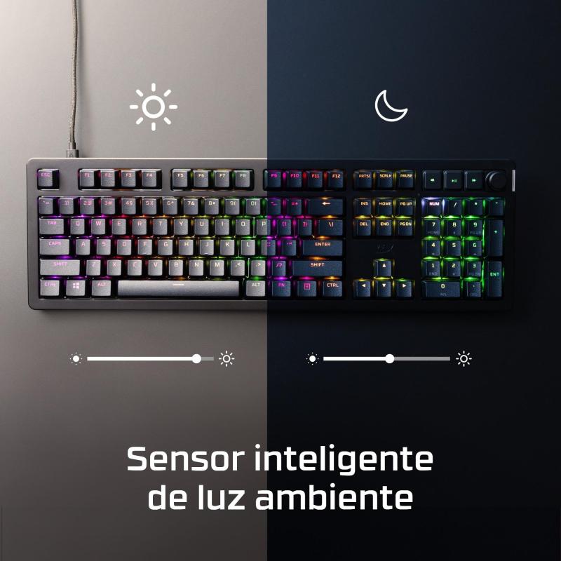 - Efectos de luz: Iluminación RGB por tecla y 5 niveles de brillo.
