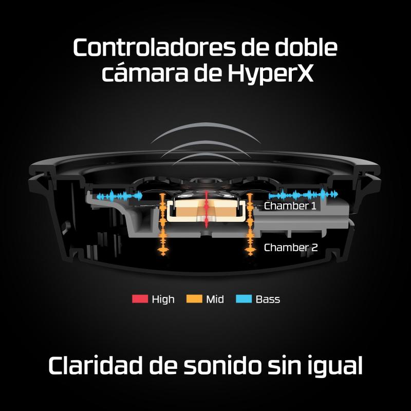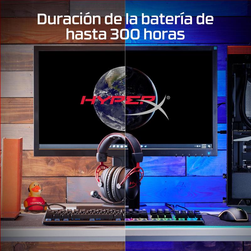 MÁS DE 300 HORAS DE DURACIÓN DE LA BATERÍA: Obtén unas impresionantes 300 horas[1] de duración de la batería y juega durante más de una semana sin que se agote la batería. Termina varias campañas de tus juegos favoritos sin tener que recargarlos. Disfruta de cada minuto de juego gracias al confort que ofrece Cloud Alpha Wireless, la espuma viscolástica característica de HyperX y las almohadillas de piel sintética transpirables. Los transductores de doble cámara HyperX proporcionan un audio increíblemente nítido, ya que el sistema de doble cámara separa los medios y altos de los bajos. Al combinarse con el audio espacial DTS® Headphone:X®[4], que ofrece una localización precisa del sonido y un sonido surround inmersivo podrás evadirte en los mundos de fantasía de tus juegos favoritos o concentrarte al máximo en los torneos. Consulta la duración de la batería, ajusta el ecualizador o accede a más opciones de personalización a través del sencillo software HyperX NGENUITY.