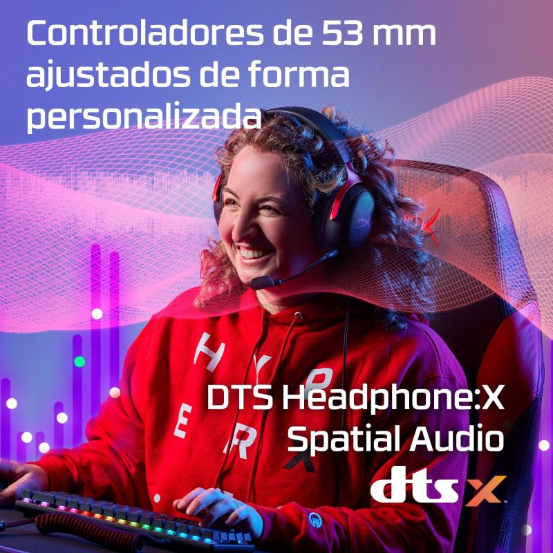 SONIDO ENVOLVENTE PARA UNA EXPERIENCIA INMERSIVA: Disfruta de un sonido envolvente de alta calidad con los Auriculares HyperX Cloud III. Gracias a la tecnología sonido envolvente DTS Headphone:X 2.0, cada detalle del audio se percibe con claridad, permitiendo una inmersión total en el juego. Ya sea para detectar pasos enemigos o sumergirse en la banda sonora, estos auriculares ofrecen un rendimiento excepcional. Sus altavoces de neodimio de 5,3 cm garantizan una reproducción precisa y potente, proporcionando una ventaja competitiva en cada partida.
