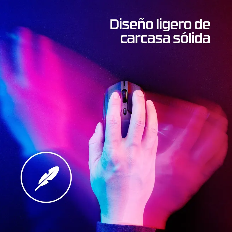 LIBERTAD INALÁMBRICA CON BATERÍA DE 370 MAH: Gracias a su batería de 370 mAh de polímero de litio integrada, el Ratón HyperX Pulsefire Haste 2 6N0A9AA proporciona una autonomía prolongada sin necesidad de cables. Esta batería se recarga de forma rápida y eficiente mediante un puerto USB tipo C, lo que permite volver al juego en poco tiempo. Su diseño inalámbrico con conectividad RF Wireless y Bluetooth ofrece una experiencia sin interrupciones, eliminando los enredos de cables y mejorando la movilidad. Esta característica es ideal para jugadores que buscan una configuración limpia y funcional. La comodidad de uso se ve reforzada por su peso ultraligero de 60 g, lo que permite movimientos fluidos y sin esfuerzo durante horas.