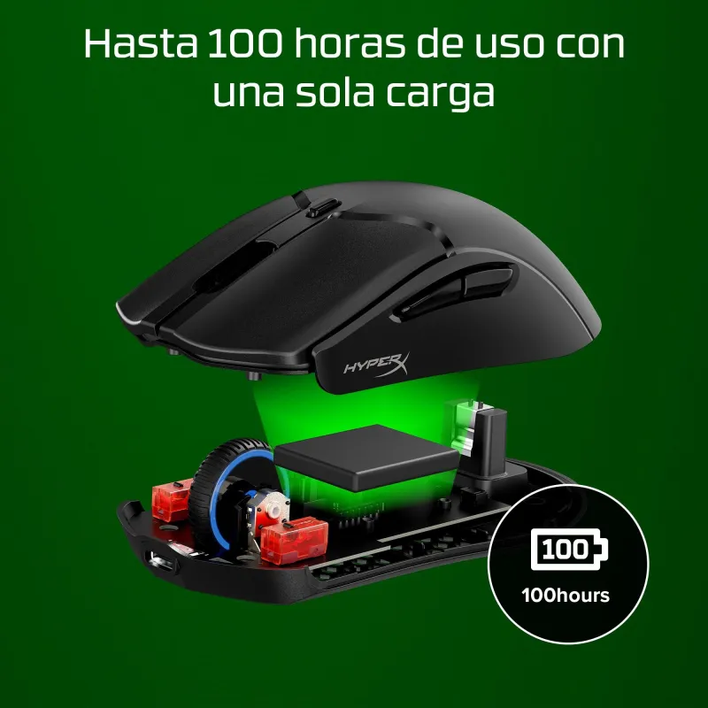BATERÍA DE 370 MAH PARA UNA AUTONOMÍA SUPERIOR: El Ratón HyperX Pulsefire Haste 2 Mini 7D388AA incorpora una potente batería 370 mAh que ofrece hasta 100 horas de autonomía, permitiendo jugar durante días sin preocuparse por la carga. Su tecnología de polímero de litio asegura una mayor durabilidad y eficiencia energética. Además, el puerto USB tipo C permite una carga rápida con una potencia que oscila entre 3 W y 15 W, reduciendo considerablemente el tiempo de espera entre partidas. Esta combinación de batería de alta capacidad y carga eficiente lo convierte en un dispositivo ideal para los jugadores más exigentes. La posibilidad de utilizarlo tanto con cable como de forma inalámbrica añade una capa extra de flexibilidad y comodidad que marca la diferencia en el entorno competitivo.