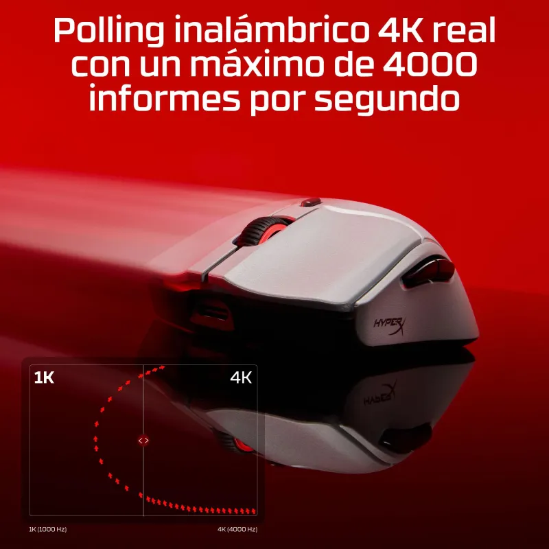 El Ratón Ratón HyperX Pulsefire Haste 2 Pro Blanco incorpora una frecuencia de sondeo 4000 Hz que mejora drásticamente la tasa de respuesta. Esto significa que cada clic y movimiento se registra de forma inmediata, eliminando cualquier tipo de retardo. Esta velocidad es fundamental para los jugadores profesionales que necesitan una respuesta inmediata en cada acción. Además, la combinación de esta frecuencia con la resolución de movimiento 26000 DPI garantiza un control absoluto sobre el entorno virtual. El resultado es una experiencia de juego más fluida, precisa y competitiva.