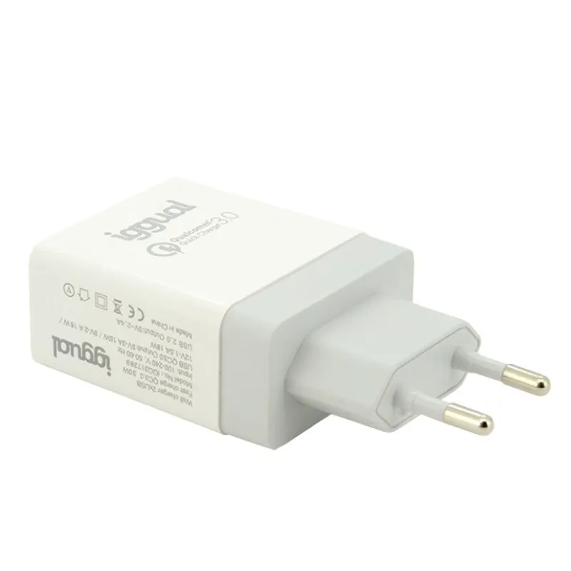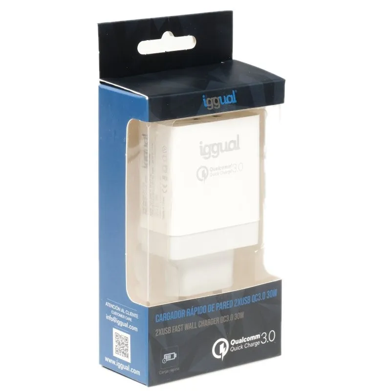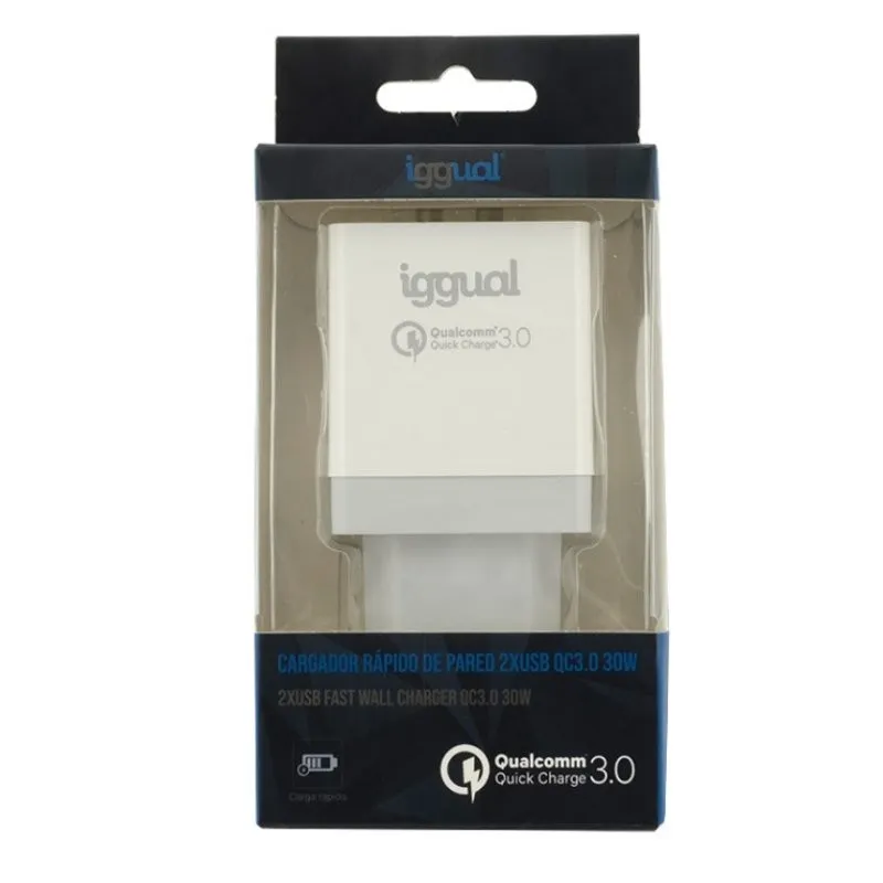 iggual Cargador 2xUSB de Carga Rápida QC3.0 30W