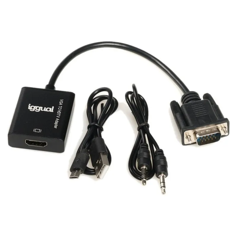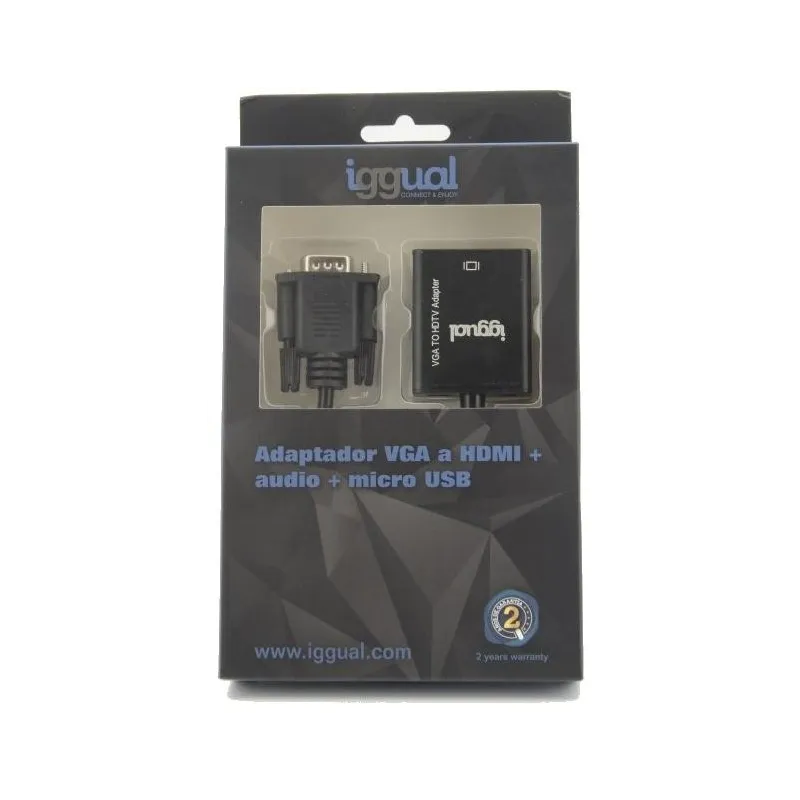 Iggual IGG317297 Adaptador de Imagen VGA a HDMI/Jack 3.5mm/microUSB Full HD 25 cm Negro