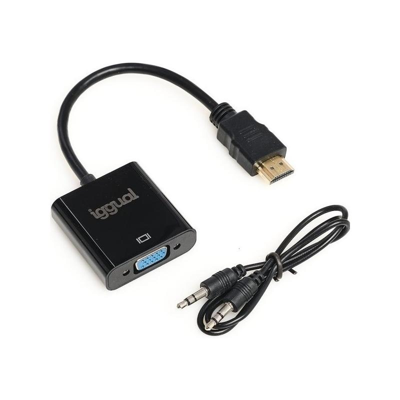Iggual IGG317303 Adaptador de Imagen HDMI a VGA/Jack 3,5 mm Full HD 20cm Negro