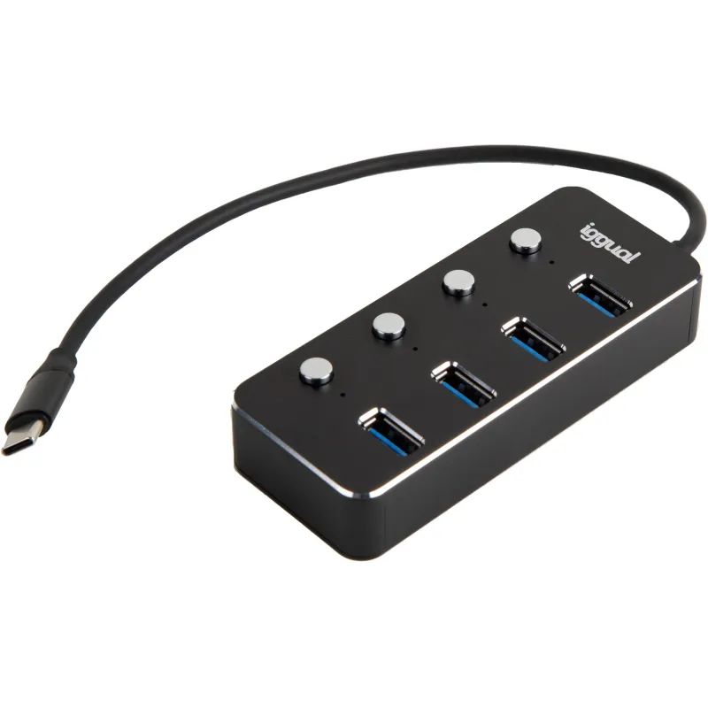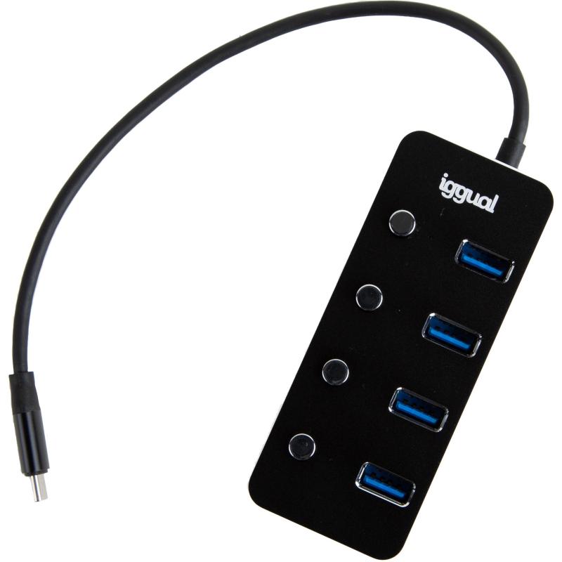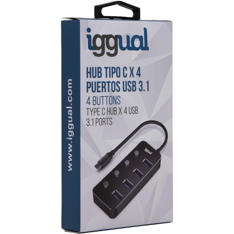 Iggual IGG318485 HUB USB-C 3.0 a USB-A 3.0 4 Puertos 24 cm Negro