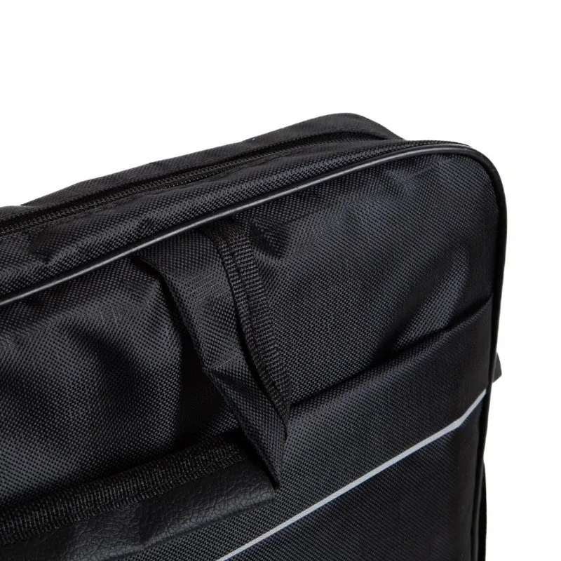 Tiene un bolsillo exterior perfecto para guardar documentos, un espacio interior dividido en dos zonas diseñadas para alojar a tu portátil así como al cargador y a otros periféricos, cuenta con asas y además, con una correa ajustable para llevarlo colgado al hombro. Su tela de poliéster Oxford es fuerte, duradera y resistente a salpicaduras.