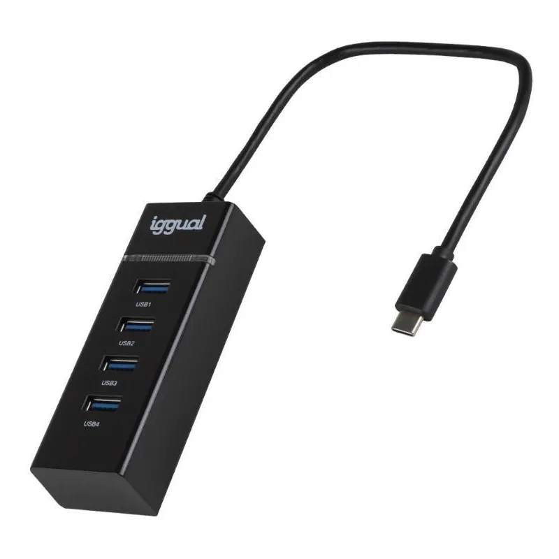 Hub iggual IGG319239 4 en 1 Conexión Mediante USB-C, 4 Puertos de Conexión USB 3.2 de Color Negro