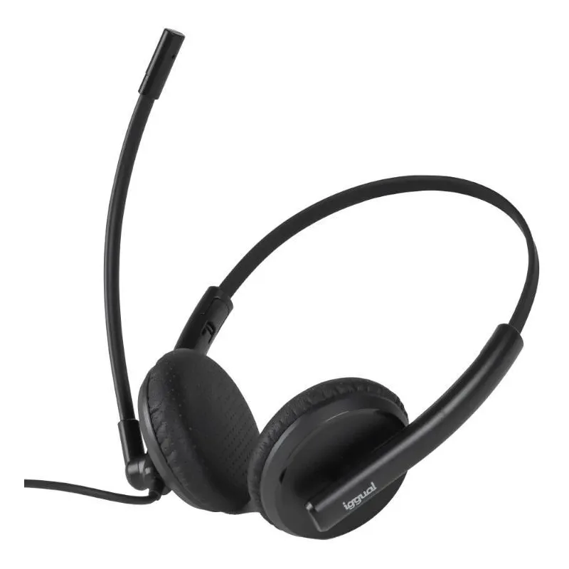 Auriculares Iggual IGG319420 USB en Forma de Diadema con Micrófono, perfectos para Oficina y Centros de Llamadas Negros