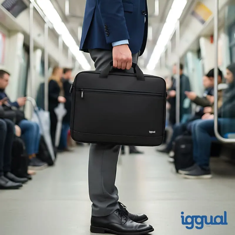 Cuando el portátil entra y sale de la mesa a diario, se agradece un transporte que no estorbe y que permita cogerlo y salir. El iggual IGG320228 encaja en ese escenario: un maletín para portátil con estética sobria en negro y un formato más cercano a “bolsa de trabajo” que a mochila.