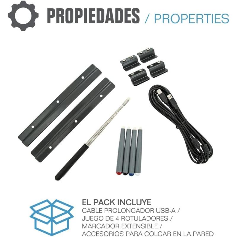 Las pantallas iggual incluyen el software eClass (solo funciona bajo entorno Windows), juego de lápices y puntero extensible, así como los accesorios necesarios para colgarlas en la pared.