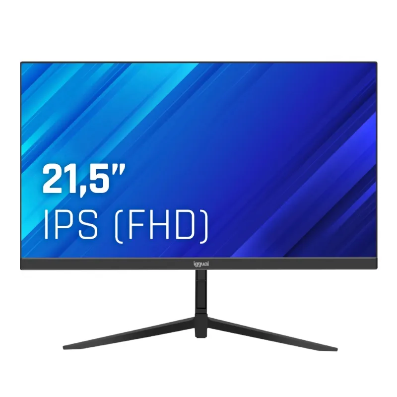 Monitor Iggual ML21S con panel IPS LED 21.5 pulgadas, resolución 1920x1080 a 100 Hz, diseño sin marco, ángulo de visión amplio y conectividad versátil.