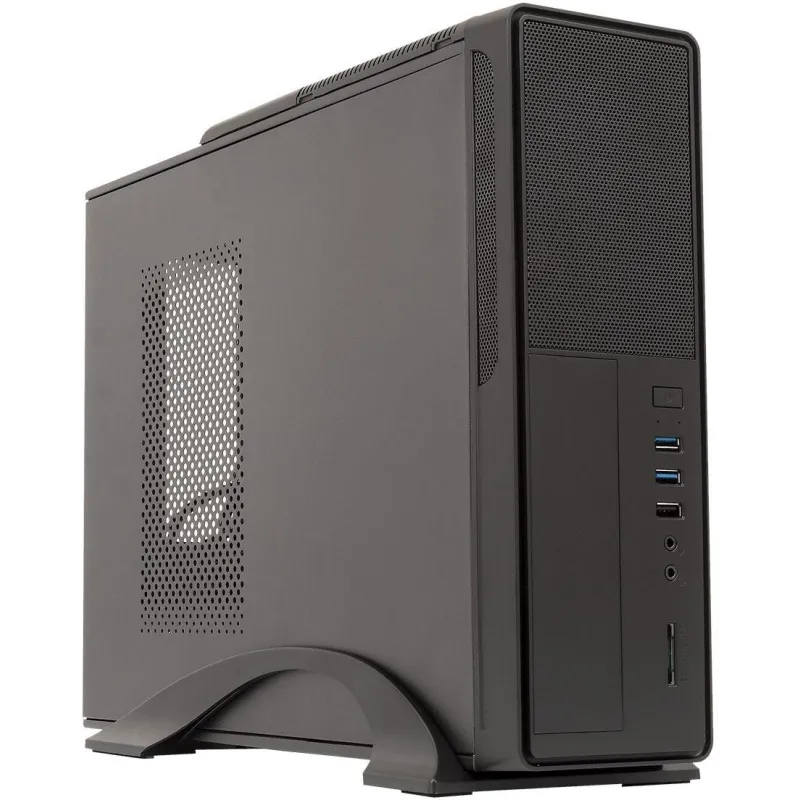 Todo esto se encuentra en una caja Slim Micro ATX-Mini ITX, un diseño compacto que optimiza el espacio sin comprometer la eficiencia térmica y la funcionalidad, ideal para entornos donde el espacio es una consideración esencial.